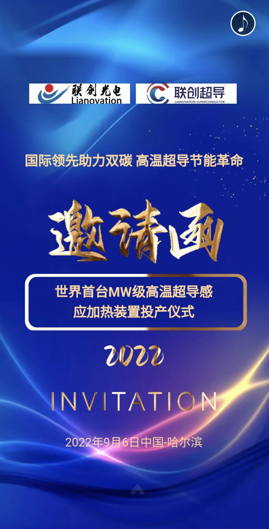 十年磨一劍,一朝試鋒芒!聯(lián)創(chuàng)高溫超導(dǎo)歷經(jīng)近十年的科技長投,傾心打造的高溫超導(dǎo)感應(yīng)加熱設(shè)備,超導(dǎo)設(shè)備于今年3月完成驗(yàn)收,聯(lián)創(chuàng)高溫超導(dǎo)即將開啟商用的新征程。我們在求真創(chuàng)新、產(chǎn)業(yè)報(bào)國的道路上,離不開諸位的鼎力協(xié)助,為感謝諸位對聯(lián)創(chuàng)超導(dǎo)的信任與支持,公司將于2022年9月6日在哈爾濱舉辦“MW級(jí)高溫超導(dǎo)感應(yīng)加熱裝置投產(chǎn)儀式”。屆時(shí)特邀嘉賓、行業(yè)專家、公司高管將介紹設(shè)備作業(yè)情況及公司高溫超導(dǎo)設(shè)備的發(fā)展戰(zhàn)略,這將是高溫超導(dǎo)近期最受矚目的重要盛會(huì)。為此,我們誠摯邀請您來參與我們的盛會(huì)!