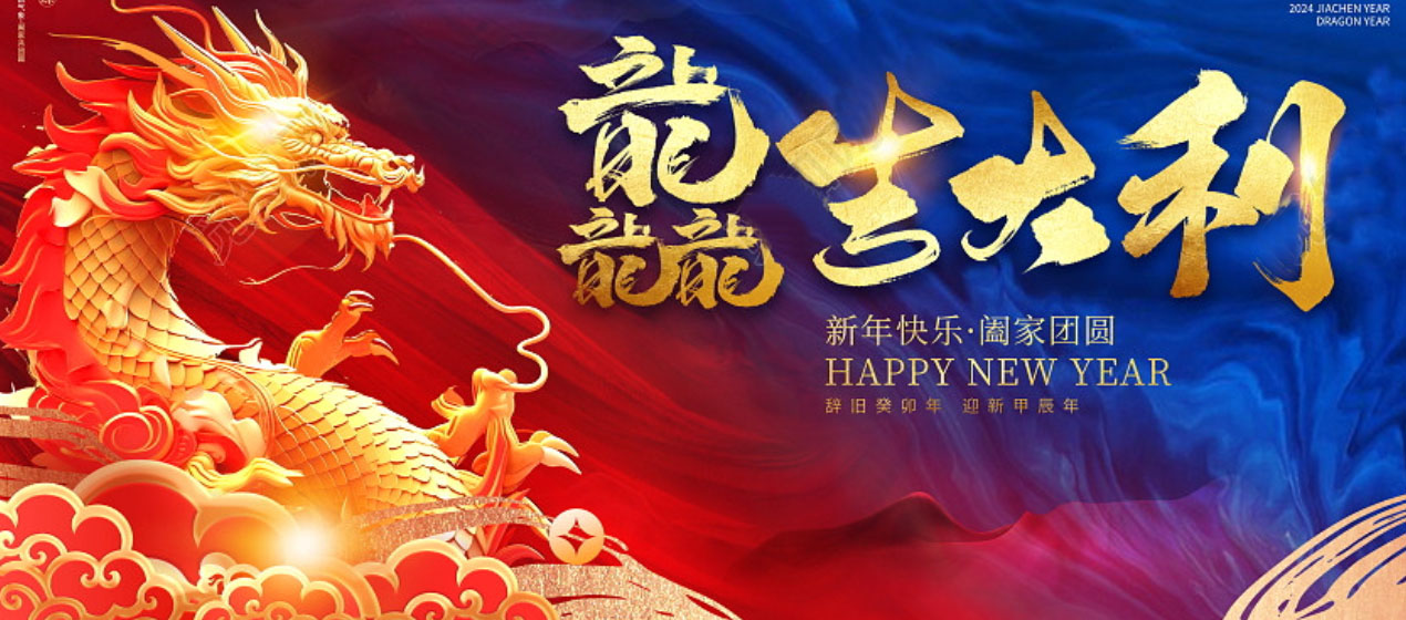 凱歌高奏樂(lè)辭舊歲,豪情滿懷喜迎龍騰。衷心祝愿大家身體健康,工作進(jìn)步,龍行龘龘,財(cái)源滾滾!